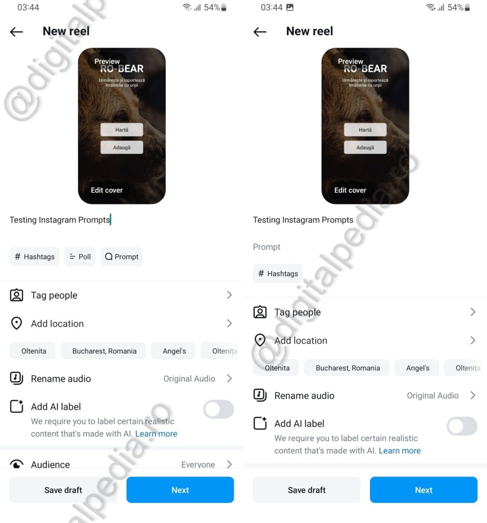 Opțiunea „Reels Prompts” este disponibilă și pentru utilizatorii Instagram din România, dar în mod limitat. Mai specific, nu toate conturile nu acces la aceasta.